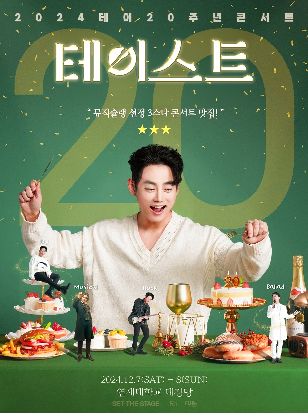 이번 2024 테이 20주년 콘서트 <테이스트>는 그의 20년간의 음악적 여정을 기념하며, 다양한 무대와 함께 팬들과 소통할 수 있는 특별한 시간이 될 것입니다. 티켓 오픈일인 10월 14일을 놓치지 마세요!