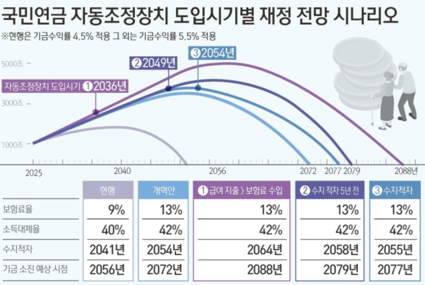 연금 기금이 언젠가 고갈되지 않을까 걱정하는 분들이 많습니다. 이번 개혁안에서는 자동조정장치라는 제도를 도입해 이런 문제를 해결하려고 합니다. 이 장치는 경제 상황이나 인구 변화에 맞춰 연금 수급액을 자동으로 조정하는 시스템입니다.