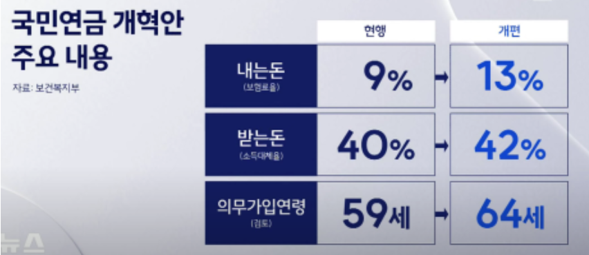 이번 국민연금 개혁안은 연금 기금을 더 오래 유지하면서, 젊은 세대의 부담을 덜어주려는 노력이 담긴 계획입니다. 보험료를 조금 더 내게 되지만, 연금도 조금 더 받게 되고, 연금 지급을 국가가 보장하기 때문에 더 안심할 수 있습니다. 연금 제도에 대한 불안이 해소될 수 있기를 기대해 봅니다.