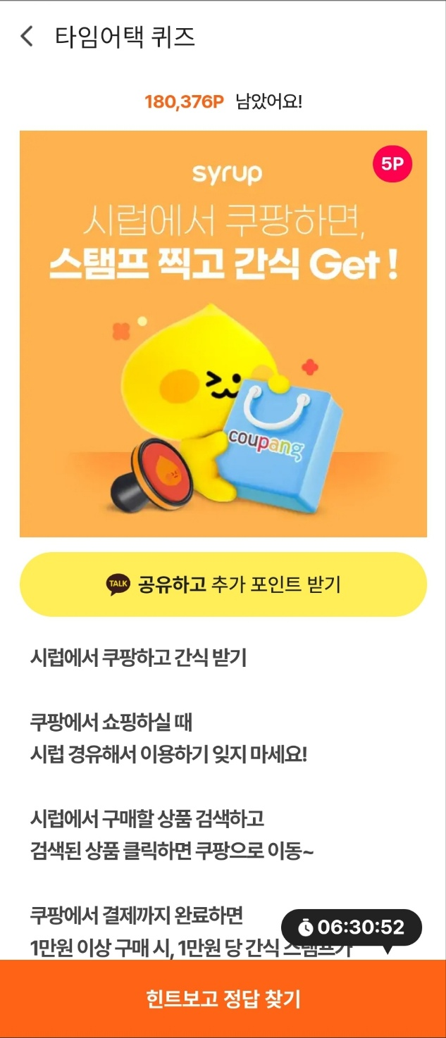 시럽 타임어택 퀴즈, 쿠팡과 연계한 이벤트 참여 팁