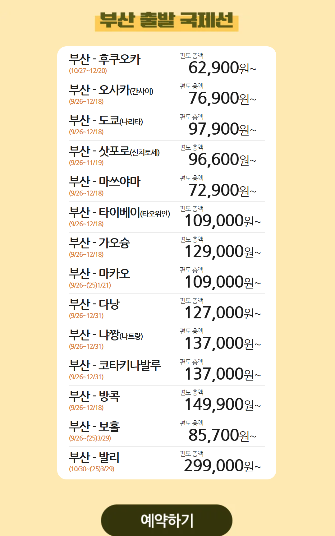 부산 출발 노선