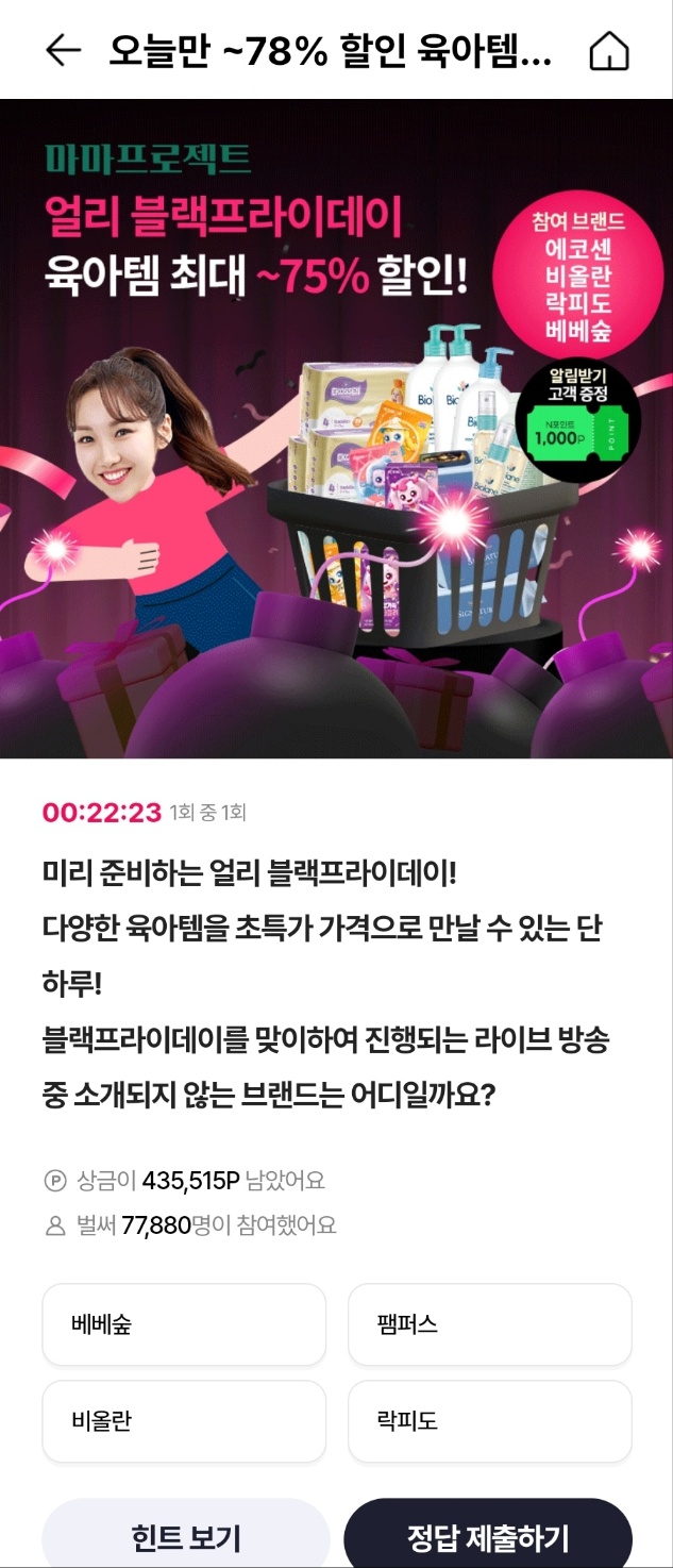 - 이벤트 혜택: 최대 78% 할인된 육아템 구매 기회 제공