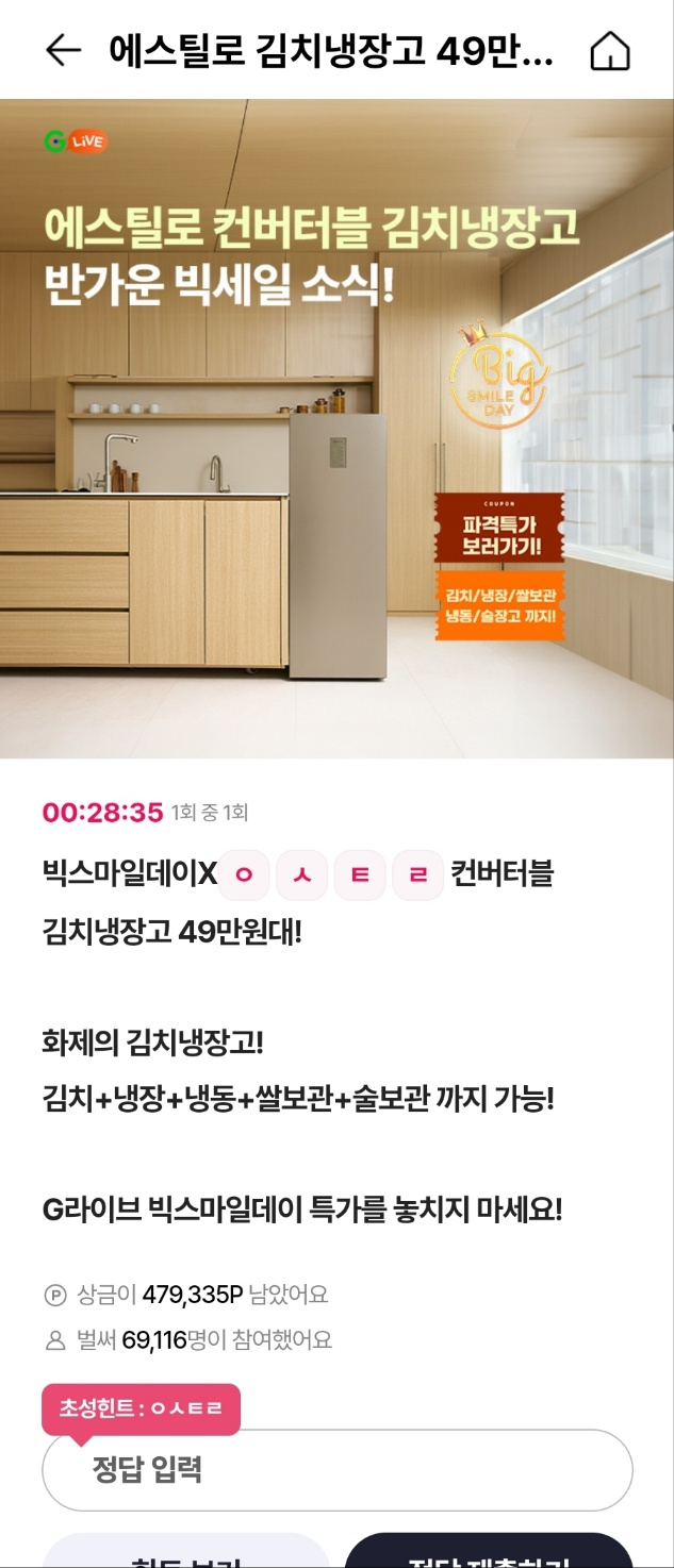 - 오전 10시: G라이브 특가 관련 퀴즈