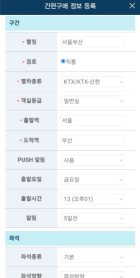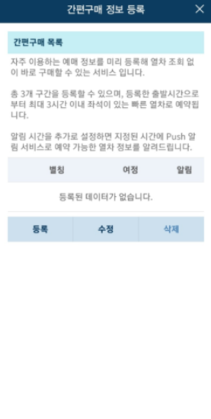 - 코레일톡 앱에서 간편 구매 목록 구간 등록