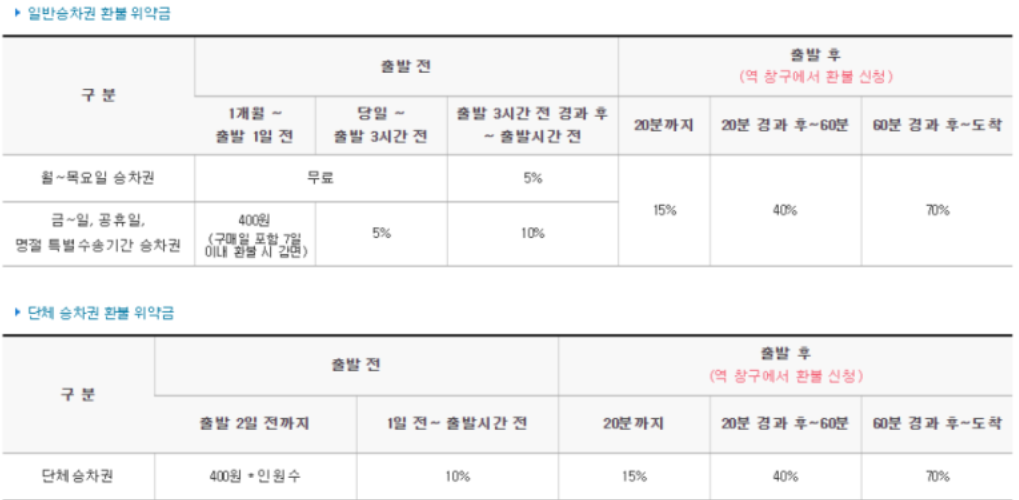 추석 기간에는 취소표가 많아지지만 코레일은 이를 줄이기 위해 특가 상품을 판매합니다. 취소표가 많아지는 시기에 특가 상품을 잘 활용하면 저렴하게 기차를 이용할 수 있습니다.