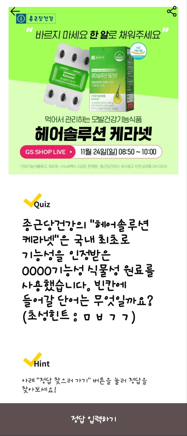 종근당건강 케라넷 캐시워크 돈버는퀴즈