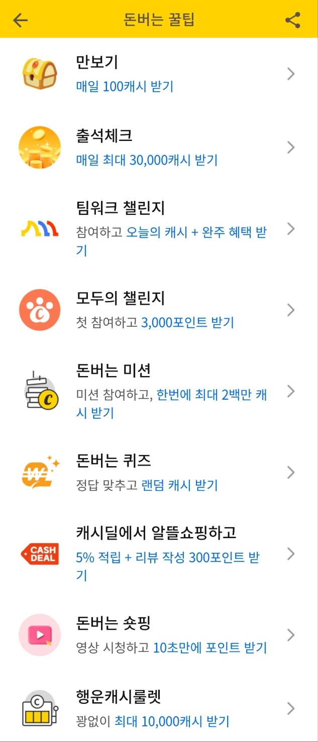 - 돈버는미션 참여: 추가로 포인트를 얻을 수 있는 다양한 이벤트.