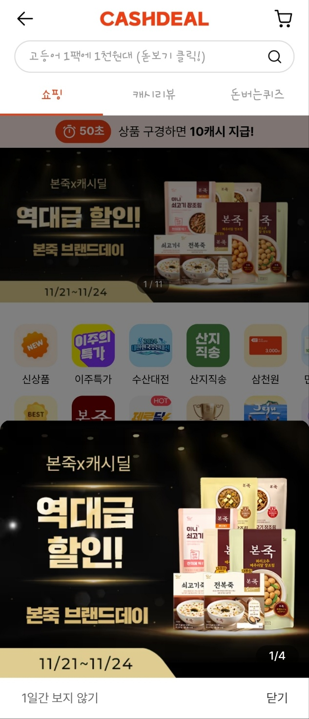 - 캐시딜 구매: 상품 구매 후 배송 완료 시 최대 7% 적립.