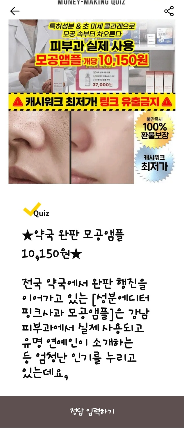 💆♀️ 더페이스샵 캐시워크 돈버는퀴즈**