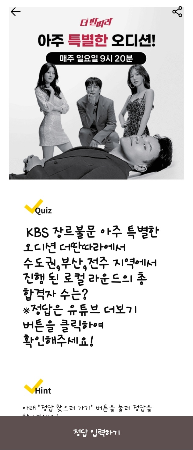 - 질문: KBS 장르불문 특별 오디션 더딴따라에서 수도권, 부산, 전주 지역의 로컬 라운드 총 합격자 수는?