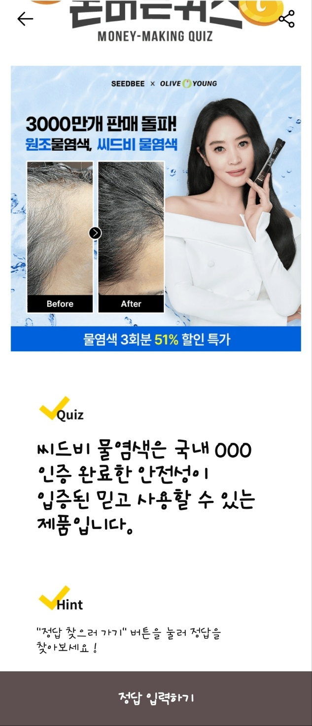 추가 정답: 12, 씨드비, 원조물염색, 국민새치염색약