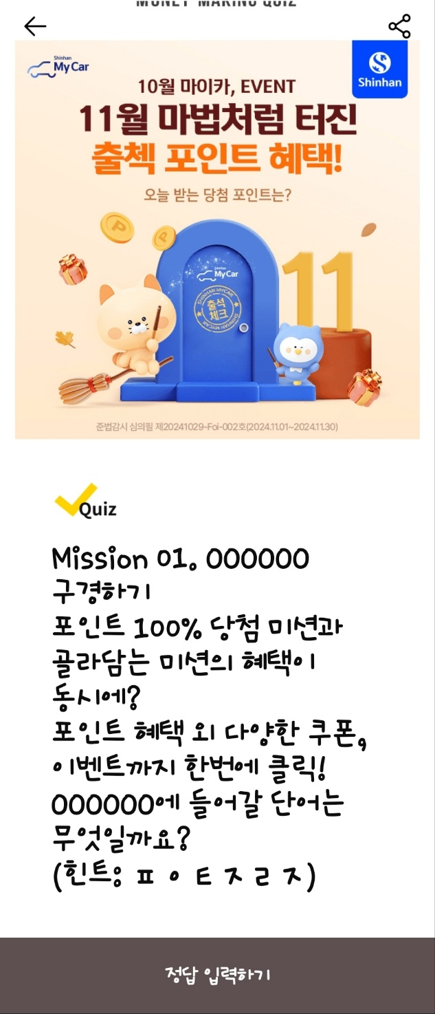 문제: 신한마이카 자동차검사 대행 서비스는 사전예약 시 할인을 제공하며, OOOO OO는 마이카에서 제공합니다. (힌트: ㄱㄷㄱㅅㅇㅇ)