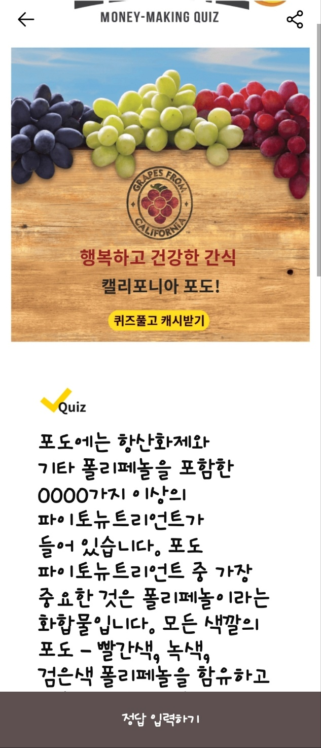 문제: 캘리포니아 포도를 OO하면 천연 샤벳 같은 작은 구슬이 되어 건강한 간식으로 즐길 수 있습니다. OO에 들어갈 단어는 무엇일까요?