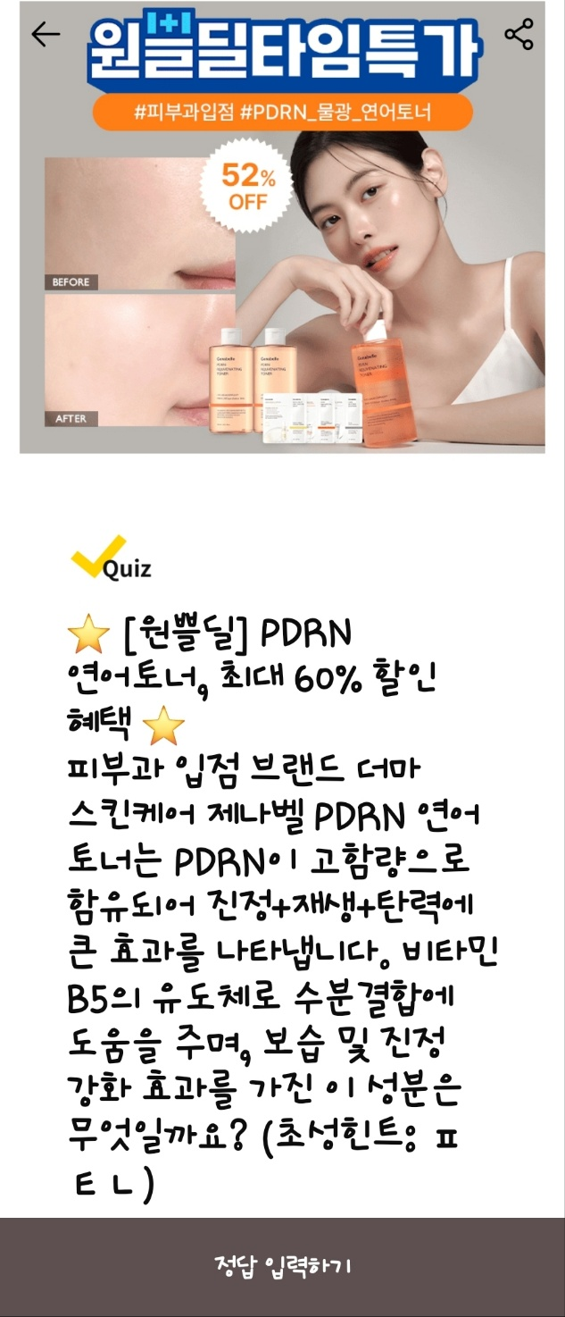 문제: 제나벨 연어 토너는 PDRN 성분이 고함량으로 함유되어 진정, 재생 효과를 제공합니다. ooo 성분이 보습 및 진정 효과를 강화하는데, 이 성분은 무엇일까요?
