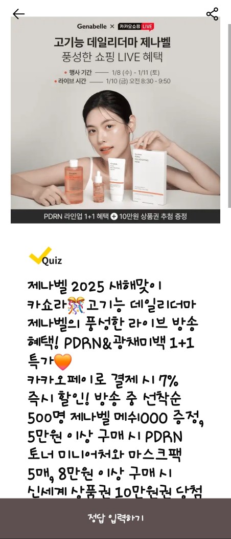 - 문제: 방송 중 선착순 500명에게 증정되는 제나벨 메쉬OOO은?