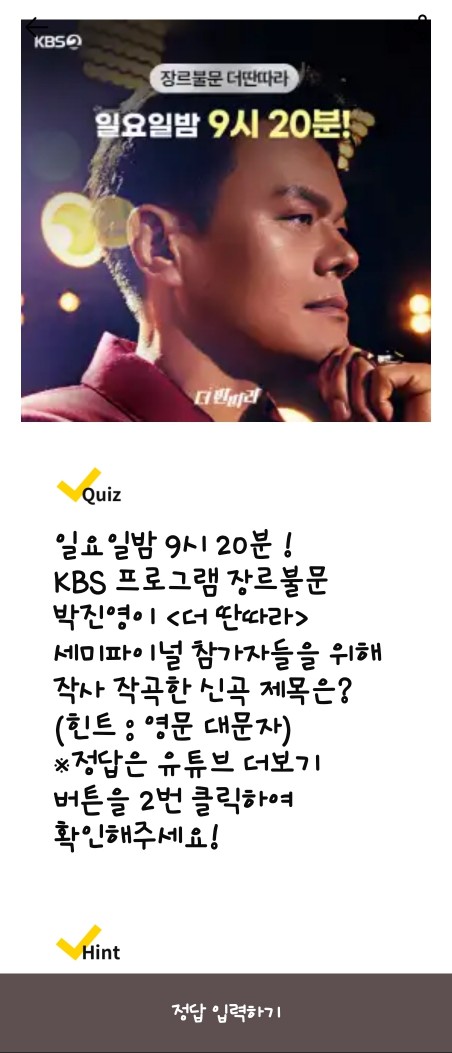 - 문제: 박진영이 작사·작곡한 신곡 제목은? (힌트: 영문 대문자)