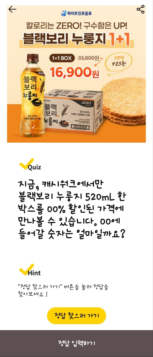 블랙보리 누룽지 캐시워크 돈버는 퀴즈