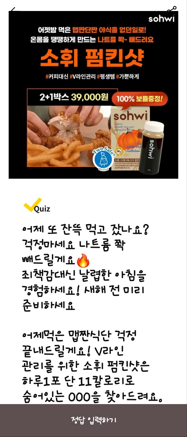 - 문제: OOOOOO을 모공 속부터 밀도있게 채워 효과적입니다. OOOOOO은?