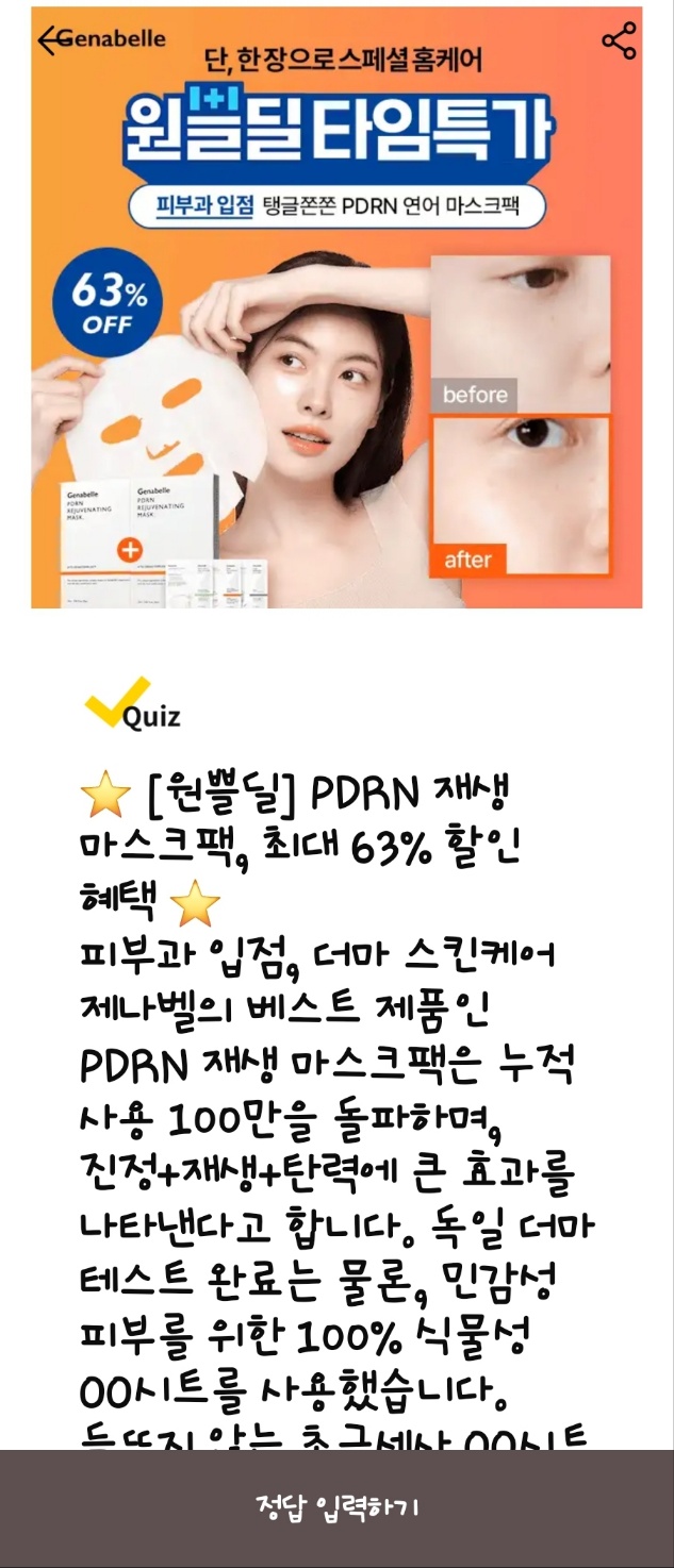 - 문제: 5만원 이상 구매 시 PDRN OO 미니 30ml 증정. OO은?