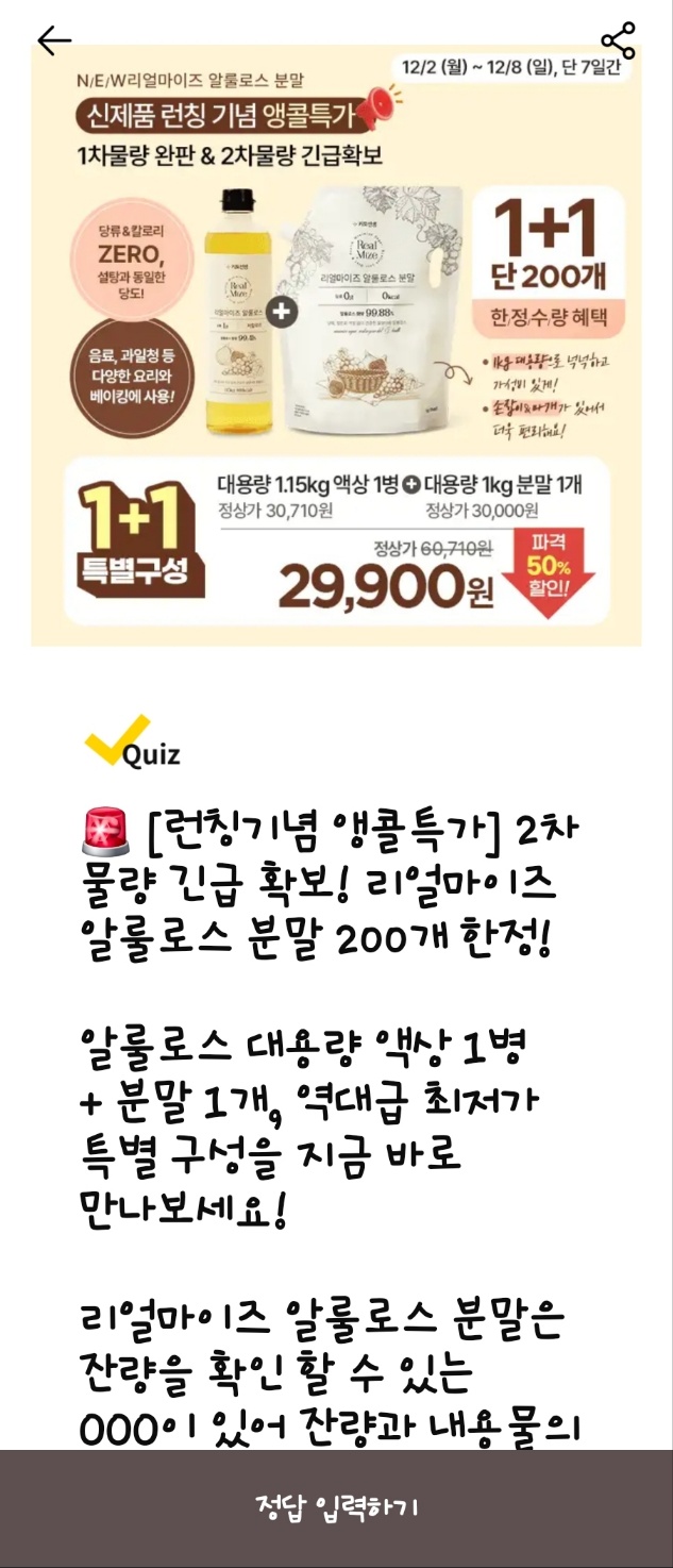 - 문제: PDRN OO 미니 30ml를 증정합니다. OO에 들어갈 단어는?