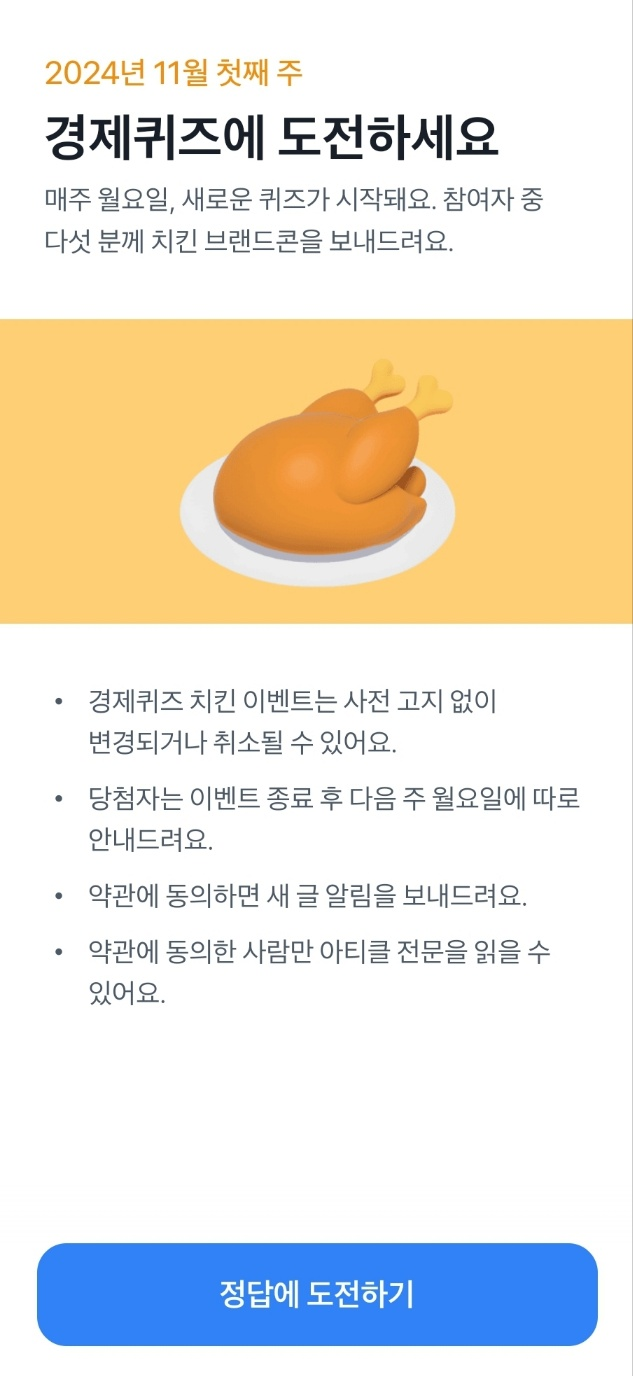 - 퀴즈의 상금은 참여자가 많을수록 빠르게 소진될 수 있으며, 상금이 소진되면 해당 퀴즈는 종료됩니다. 특히 인기가 많은 이벤트일수록 상금이 빠르게 소진되니, 빠른 참여가 유리합니다.