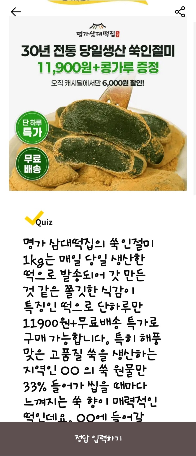 명가삼대떡집 캐시워크 문제