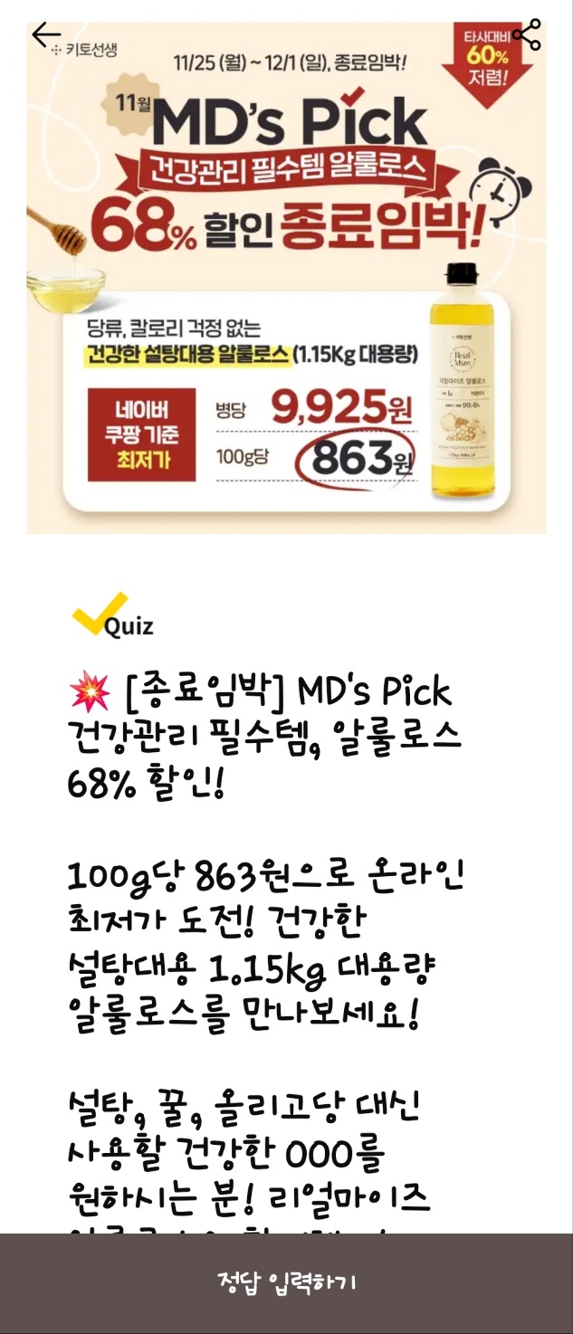 - 정답 입력은 1회만 가능: 퀴즈 정답을 맞히면 다시 참여할 수 없으니 신중하게 입력하세요.