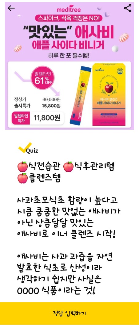 - 문제: 무려 2,088시간 발효한 유기농 헝가리산 애사비 사과초모식초 65% 배합! 비여과 & 비주정 자연발효공법을 통해 초모가 함된 진짜 애사비!