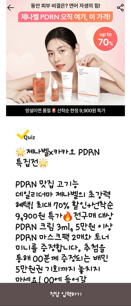 Q. 제나벨x카카오 PDRN 특집전에서 추첨을 통해 OO명에게 배민 5만원권을 증정! OO에 들어갈 숫자는?