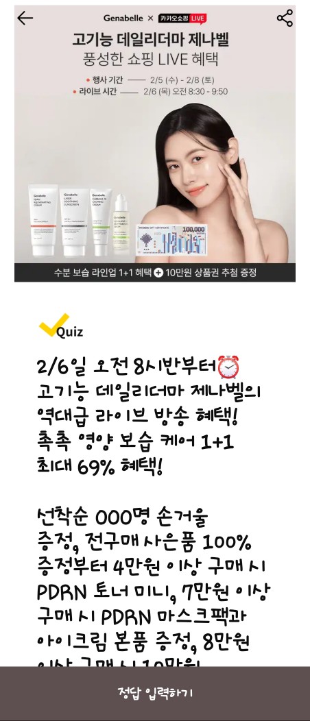 - 문제: 제나벨 라이브 방송에서 선착순 OOO명 손거울 증정!