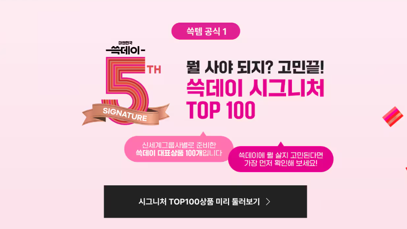 특히 올해는 ‘시그니처 톱 100’이라는 테마로 먹거리부터 패션, 가전, 가구까지 다양한 카테고리의 대표 상품들이 대규모로 할인을 한다고 하니, 기대해도 좋을 것 같습니다.
