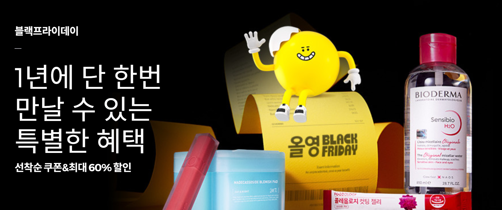 2024 올리브영 블랙프라이데이 세일은 연말 대세일 중에서도 특별한 기간입니다. 11월 1일부터 7일까지 단 일주일 동안 하루 한정 특가가 매일 다른 제품으로 제공됩니다. 예를 들어, 11월 1일에는 라운드어라운드 클렌징밤이 단 1,990원에 판매되니 꼭 놓치지 마세요!