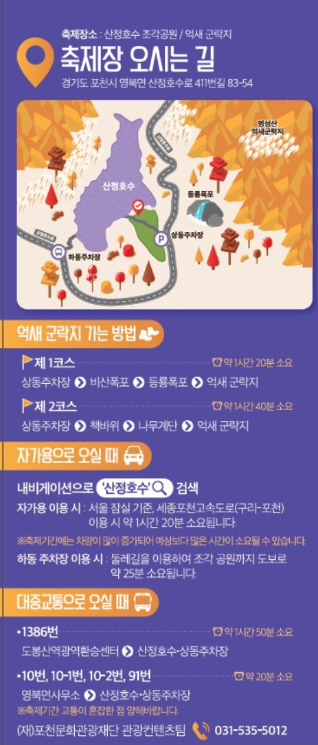 - 장소: 경기도 포천 산정호수, 명성산 일대 (주요 행사: 산정호수 조각공원)