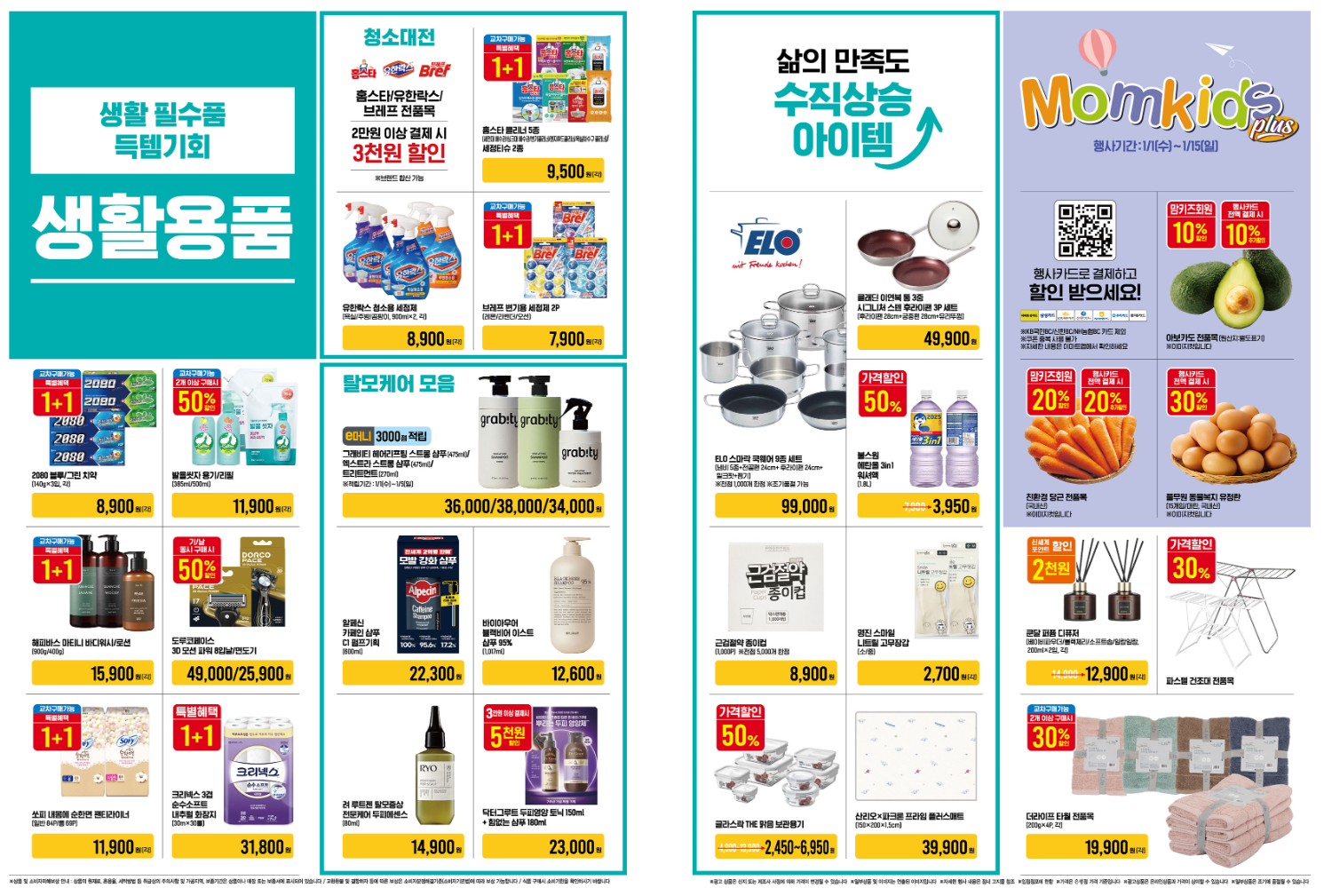 - 건강식품(영양제): 2개 이상 구매 시 50% 할인 (1/1~1/5)