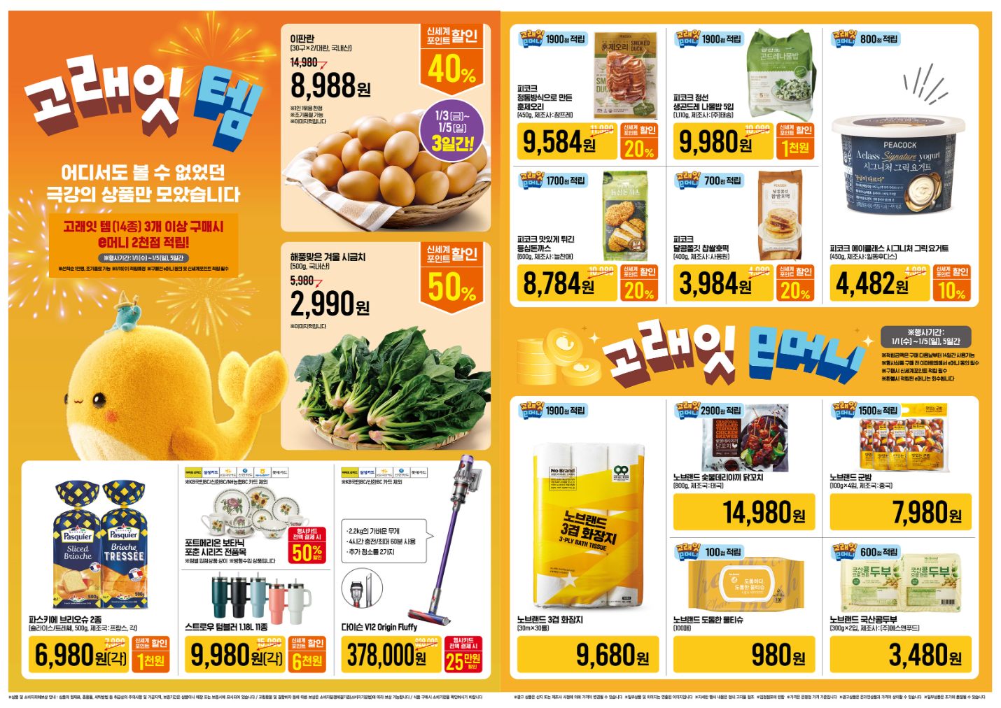 고래잇템은 이마트에서 특별히 선보이는 품목들로, 기간 한정 할인과 함께 큰 혜택을 제공합니다. 한정된 기간 내에 구매할 수 있는 기회를 놓치지 마세요!