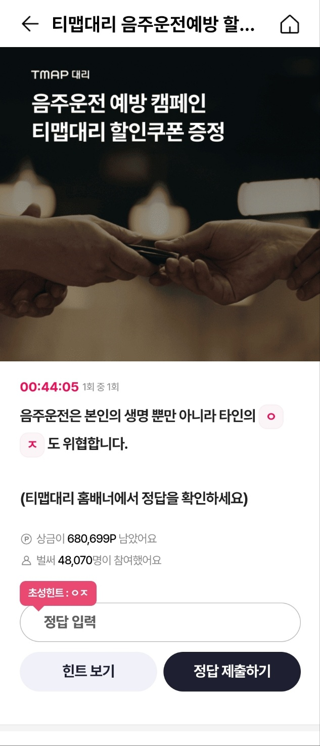 음주운전은 본인의 생명뿐만 아니라 타인의 ○○도 위협합니다.